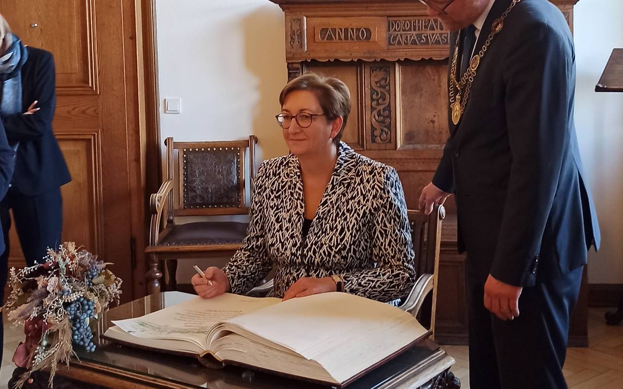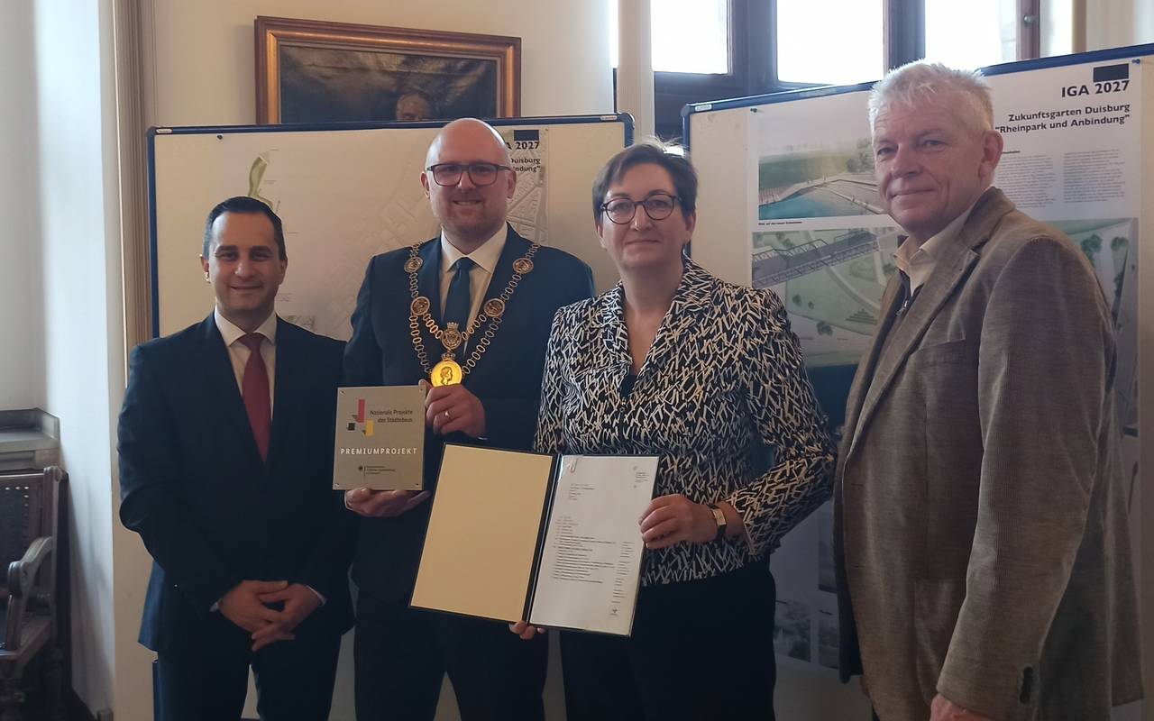 Der Umbau soll den Kultushafen auch besser an den Rheinpark anschließen. Der Rheinpark nimmt nämlich als Zukunftsgarten an der Internationalen Gartenausstellung (IGA) 2027 teil. Zum Abschluss des Treffens hat sich die Bundesbauministerin Klara Geywitz dann auch noch ins goldene Buch der Stadt Duisburg eingetragen: