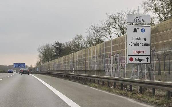 Ab- oder Auffahren ist wegen Bauarbeiten für knapp 4 Monate nicht möglich. Denn an der Anschlussstelle Großenbaum wird unter anderem eine neue Entwässerungsanlage installiert und die Fahrbahn erneuert. Umleitungen führen über die Anschlussstelle Wedau und das Autobahnkreuz Duisburg Süd.