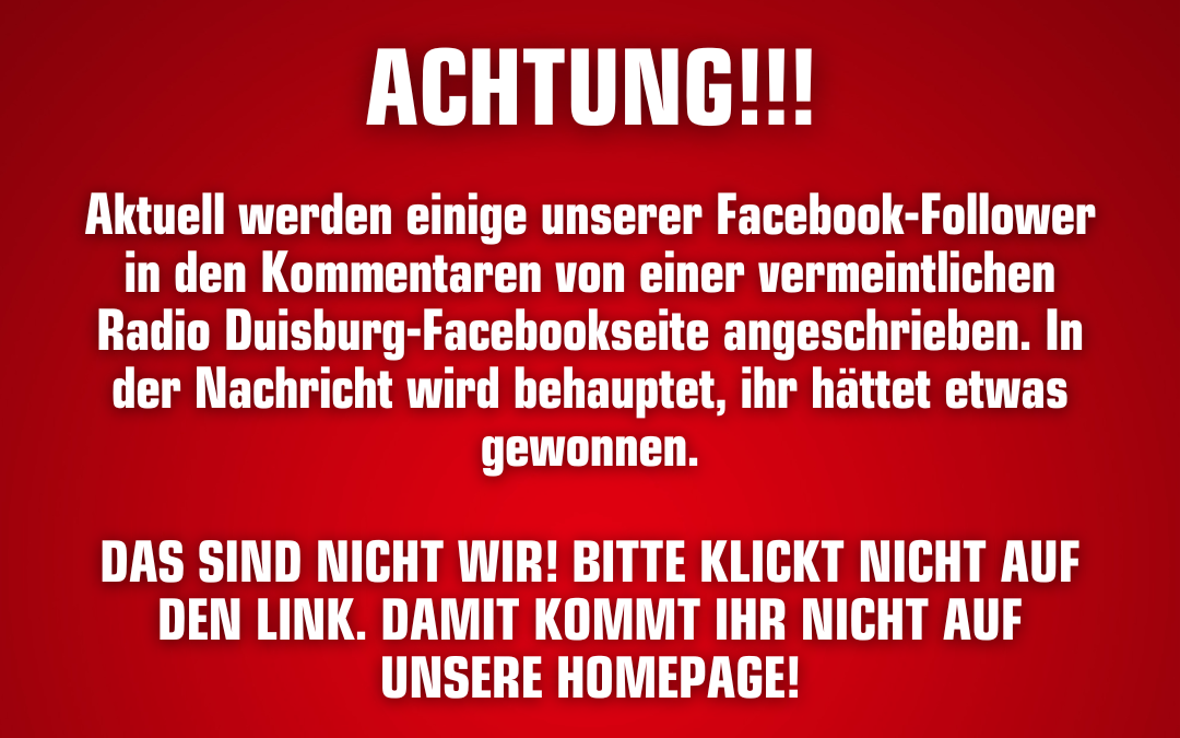 Aktuell werden einige unserer Facebook-Follower in den Kommentaren von einer vermeintlichen Radio Duisburg-Facebookseite angeschrieben. Das sind nicht wir!