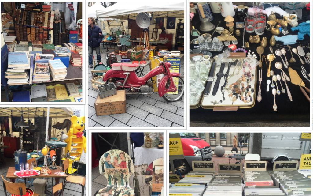In der Innenstadt gibt es heute (5.10.) wieder den Antikmarkt Zeitreise. Auf der Königsstraße bieten Händler verschiedene Sachen aus mehreren Jahrzehnten an.
