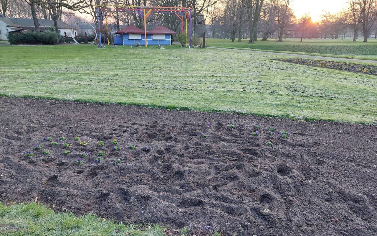 Ärgerlich: 500 frisch gepflanzte Violen sind aus dem Beet in Meiderich gerissen worden. Die Wirtschaftsbetriebe haben Anzeige erstattet