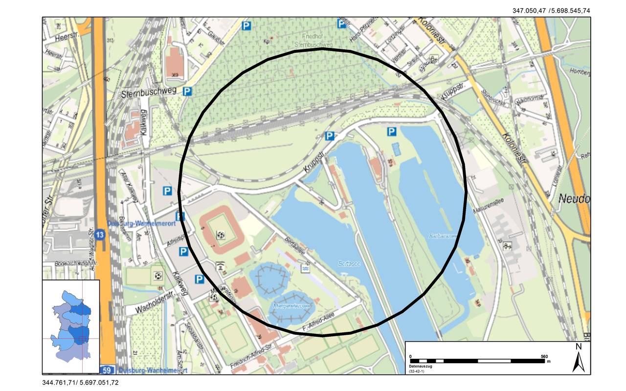 An der Kruppstraße in Duisburg-Neudorf Süd nahe der Regattabahn wurde heute bei Sondierungsarbeiten eine amerikanische Zehn-Zentner-Bombe mit Aufschlagzünder gefunden. Der Kampfmittelbeseitigungsdienst hat die Bombe noch am Nachmittag entschärft. Um 17:38 Uhr konnte Entwarnung gegeben werden. In der Evakuierungszone waren ungefähr 30 Personen betroffen.