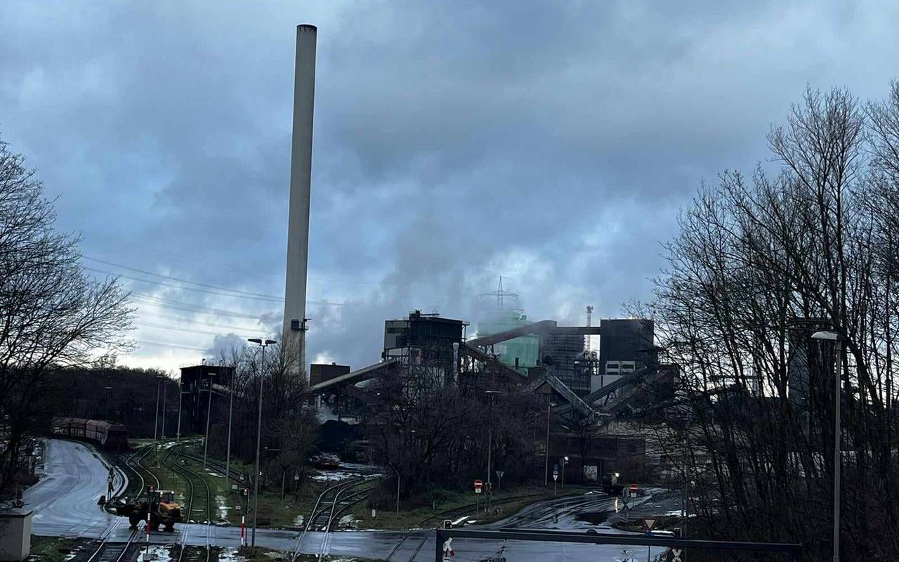 Brand bei den Hüttenwerken Krupp Mannesmann in Hüttenheim. Die Werkfeuerwehr ist im Einsatz.
