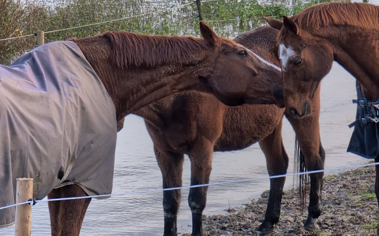 Auch an der Brücke der Solidarität sind die Rheinwiesen unter der Wasseroberfläche verschwunden. Das freut die Pferde am Tiergnadenhof in Rheinhausen. Die stehen munter am Ufer direkt neben dem Stall und schlabbern das Wasser genüsslich auf. Das Stallteam rund um Stephan Letsch steht ganz beruhigt daneben. Die aktuellen Prognosen sind kein Grund zur Sorge: