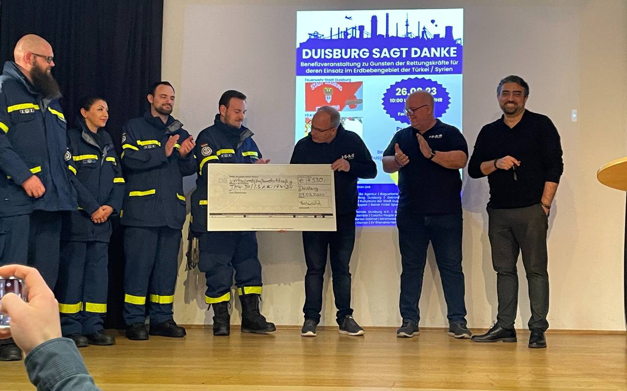 Ein Jahr nach dem Erdbeben in der Türkei und Syrien haben verschiedene türkischstämmige Vereine und andere Institutionen "Danke" gesagt. Danke, für die Hilfe von THW, ISAR Germany und Feuerwehr Duisburg im Erdbebengebiet. Bei einer Benefizaktion im August sind unter anderem mehrere tausend Euro gesammelt worden.