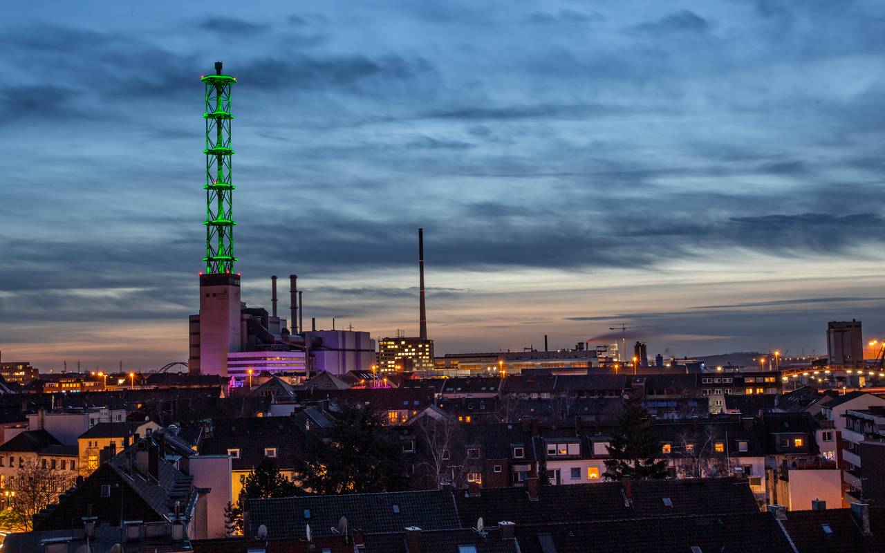 Der Stadtwerketurm leuchtet in der kommenden Nacht (27./28.11.) blau. Das ist die Farbe der Duisburger Versorgungs- und Verkehrsgesellschaft.