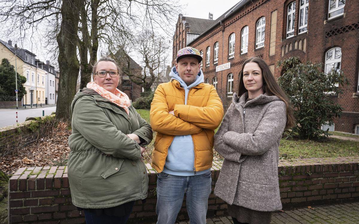 Eltern der GGS Ottostraße in Homberg-Hochheide protestieren am Nachmittag auf dem Schulgelände. Hintergrund sind Pläne der Stadtverwaltung, wonach in ein Gebäude Förderschüler einziehen sollen.