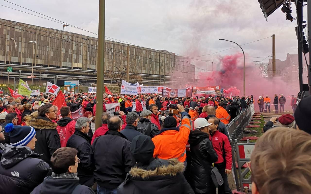 Die Warnstreiks im Tarifstreit der Stahlbranche gehen weiter. Schon gestern (4.12.) haben 800 Stahlarbeiter bei HKM in Hüttenheim für mehr Geld bei gleichzeitiger Arbeitszeitverkürzung demonstriert.