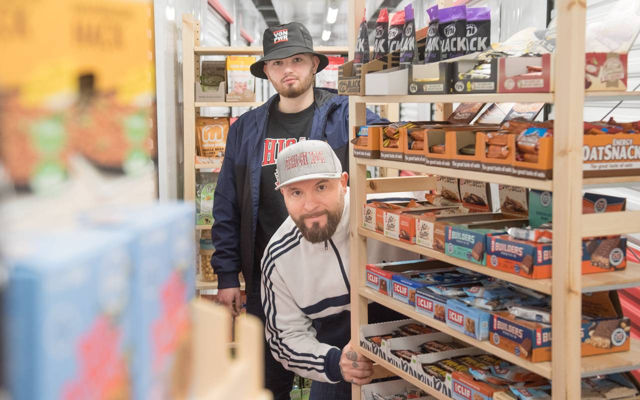 Sascha Franzen und sein Sohn Grisha verkaufen auf 40 Quadratmetern vegane Lebensmittel aber auch T-Shirts, Caps oder Socken. Das neue Angebot hat sich schnell rumgesprochen. Viele Stammkunden kennen die beiden noch aus der Corona Zeit. Da haben die sie auf dem Außengelände der Lagerhalle „Top Box“ in Kaßlerfeld einen veganen Open Air Supermarkt angeboten.