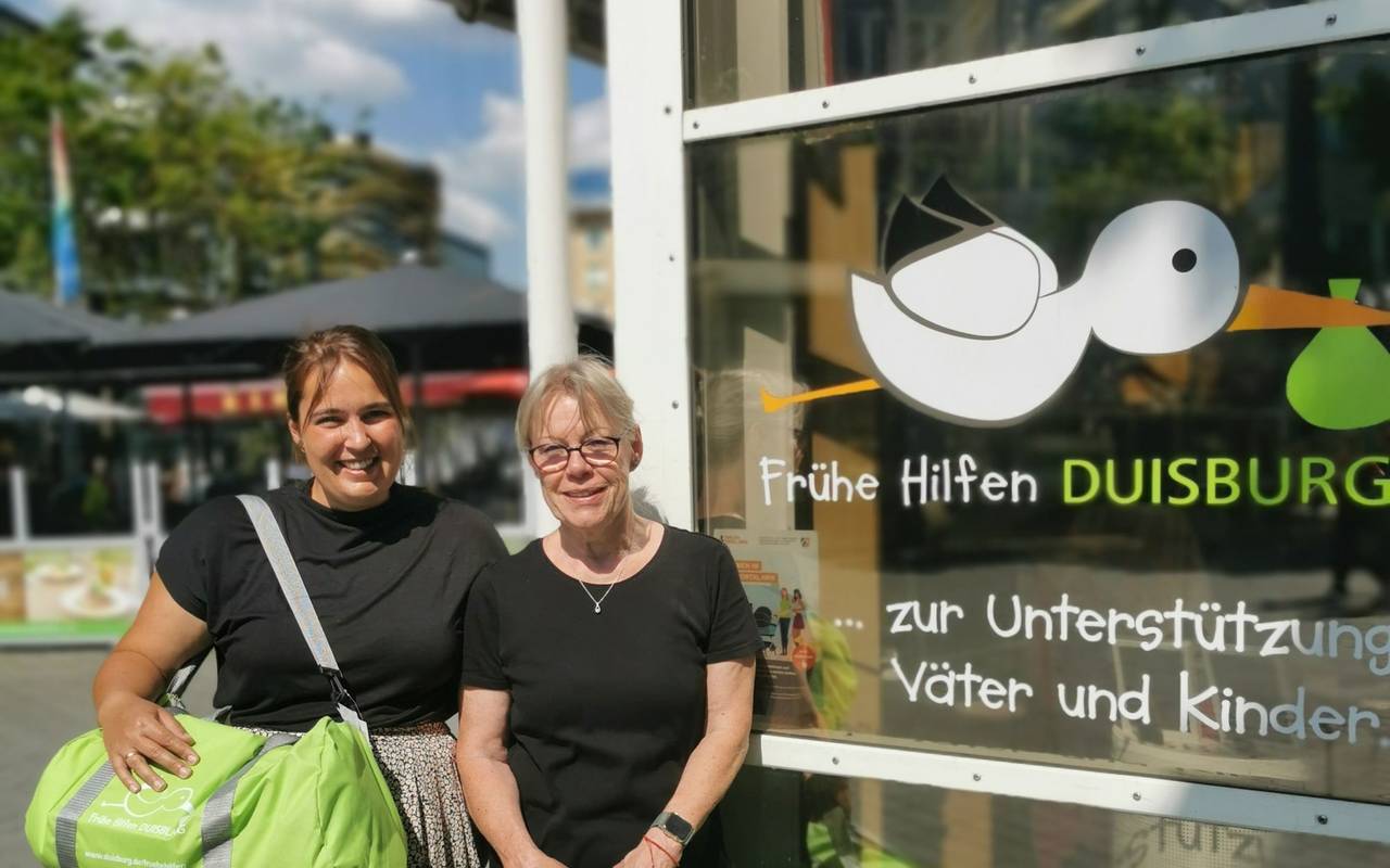 (Foto: Christina Müller (li) von den Frühen Hilfen bedankt sich bei Heike Schobbenhaus (re))