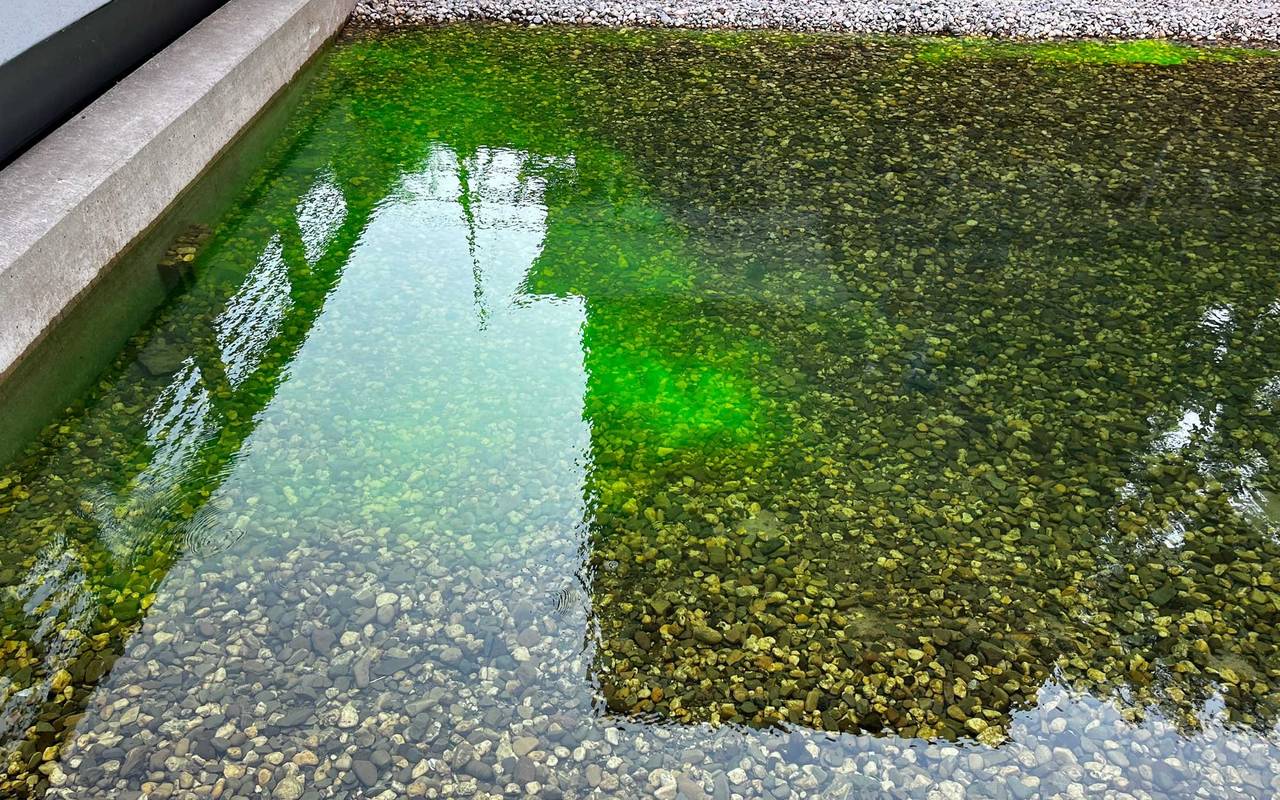 Aktuell wird dort ein so genanntes Tracerverfahren durchgeführt. Dadurch soll der Abfallgehalt und die Fließgeschwindigkeit des Wassers gemessen. Dafür wird ein grüner Farbstoff eingesetzt. In wenigen Tagen soll das Wasser im Innenhafen wieder normal aussehen.