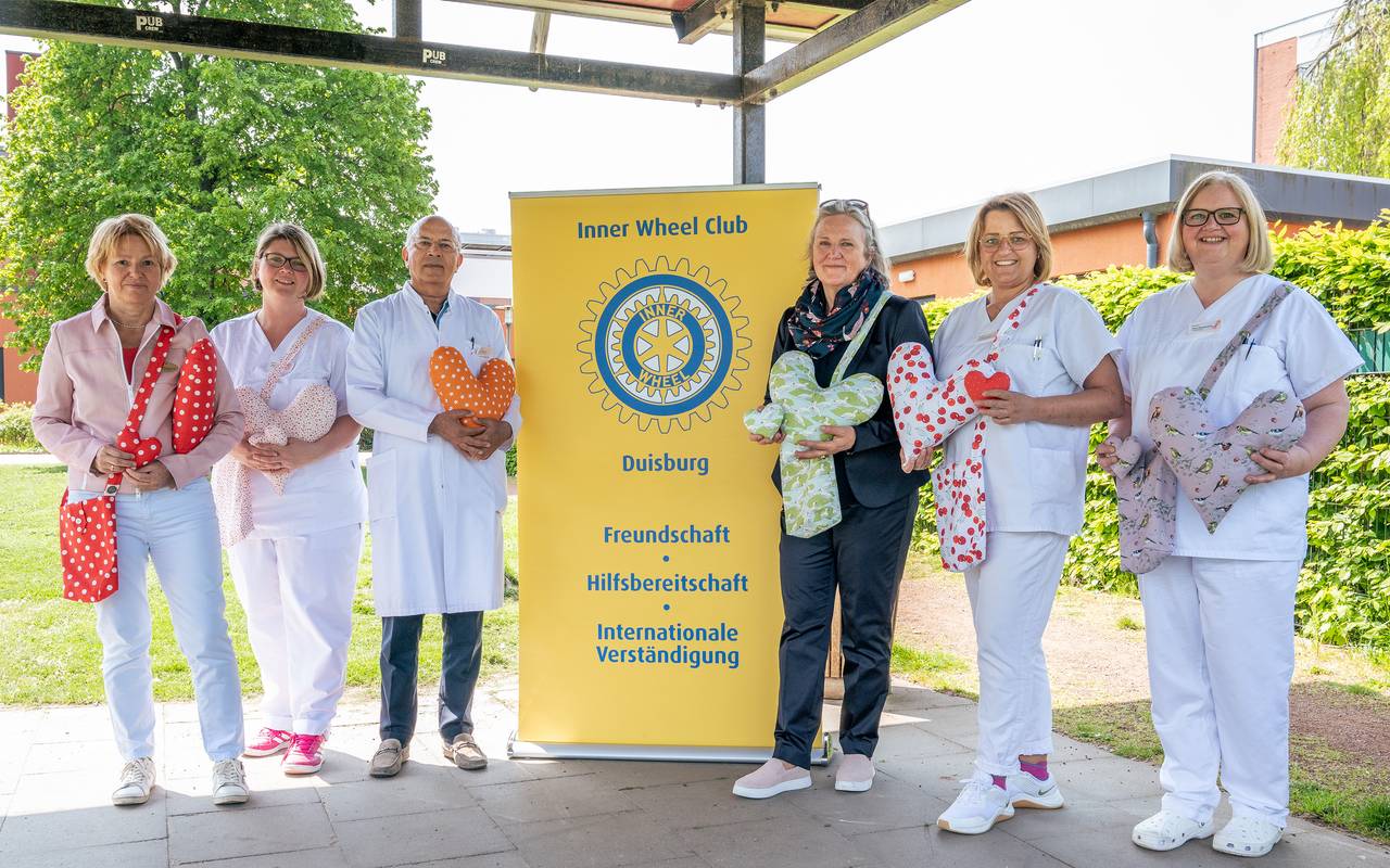 Die Frauenorganisation Inner Wheel Duisburg hat wieder 12 selbstgenähte Herzkissen an Patientinnen der St. Anna Helios Klinik gespendet.