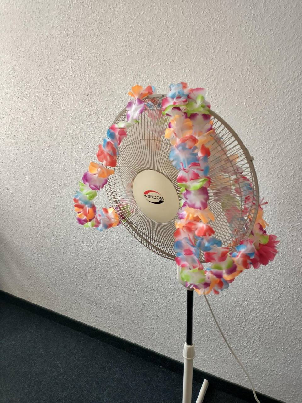 Günstigere Abhilfe kann da schon ein Ventilator schaffen. Der kühlt zwar den Luft nicht runter, die Brise fühlt sich auf der Haut aber trotzdem angenehm kühl an. Außerdem liegen die Kosten bei 500 Betriebsstunden ungefähr bei 15 Euro.