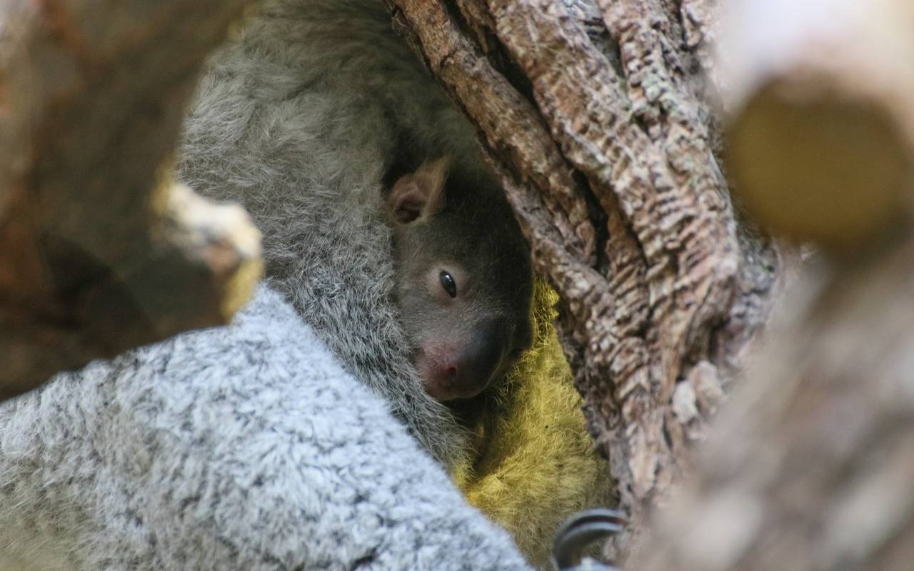 In Mamas Beutel ist es kuschelig warm. Ob hier ein Koala-Mädchen oder Junge heranwächst, weiß man noch nicht. Vielleicht Mitte Dezember, dann wird der Mini-Koala neugierig und verlässt öfter mal Mamas Beutel.