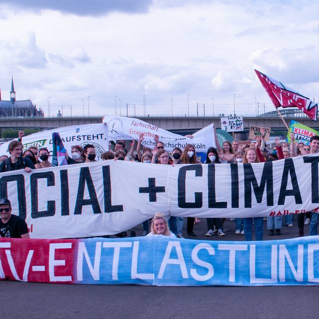 Das kleine Lützerath, ein Ortsteil von Erkelenz westlich von Köln, ist seit Tagen von der Polizei abgeriegelt und mit einem doppelten Zaun umgeben. Die wenigen Gebäude der Siedlung werden derzeit abgerissen, um es dem Energiekonzern RWE zu ermöglichen, die darunter liegende Kohle abzubaggern. Dagegen protestierten am Samstag trotz Dauerregens und starker Windböen viele Tausend Menschen im benachbarten Ortsteil Keyenberg. Die Polizei sprach von 15.000 Teilnehmern, die Veranstalter schätzten die Zahl auf 35.000.