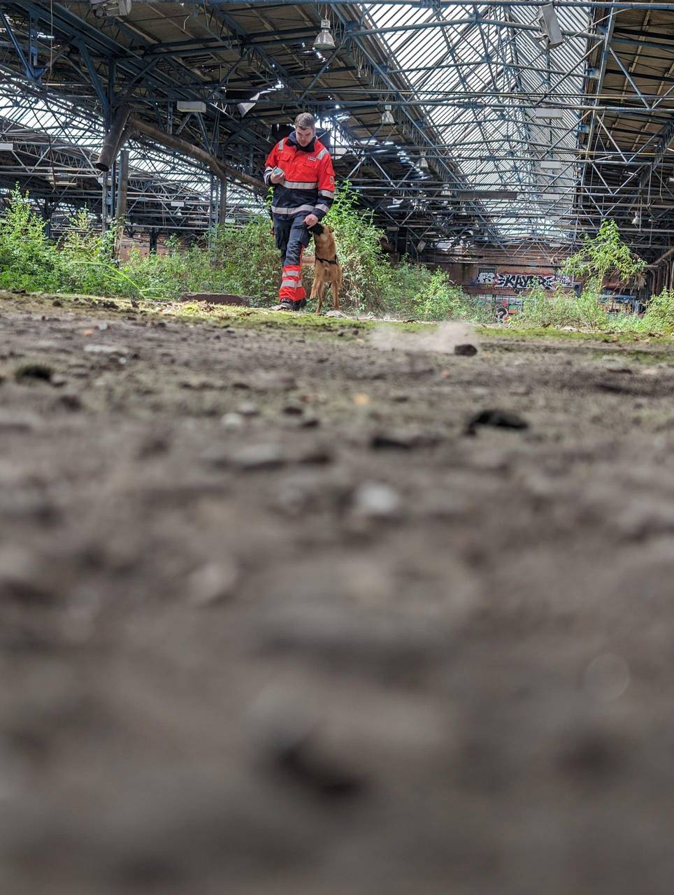 Für das Training braucht es große und verwinkelte Flächen. Der alte Güterbahnhof an der Regattabahn eignet sich deshalb hervorragend. Auf der über 300.000qm großen Fläche, trainieren acht Rettungshund-Anwärter. Zwischen den alten Mauern und zugewucherten Gebüschen sind viele gute Verstecke, die die Hunde dann finden müssen. Für "Anfänger" gibt es aber vorher ein paar Grundübungen. Die Hunde müssen zum Beispiel Ruhe bewahren, wenn sie von einer Gruppe Menschen eingekreist werden. Wenn solche Sachen sitzen, dann geht es an die Suche. Einsatzleiter Patrick Seifert hat das schon oft mitgemacht und weiß, dass prinzipiell erstmal alle Hunde für den Job in Frage kommen: