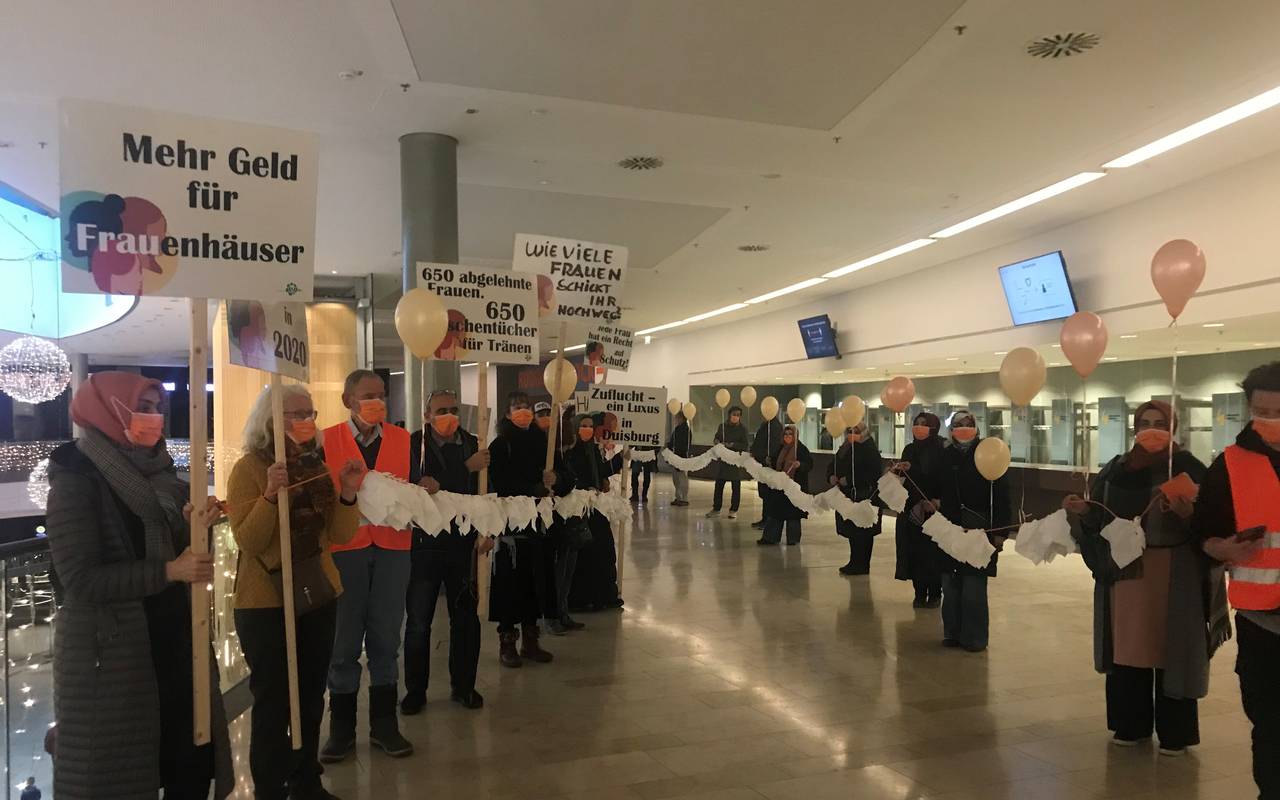Der Bürgerplattform DU Aktiv ist das nicht genug. Sie demonstriert rund um die Ratssitzung für eine sichere Finanzierung und die Einrichtung eines dritten Frauenhauses in unserer Stadt. Die Duisburger Frauenhäuser haben gerade mal 25 Plätze. Das reicht bei weitem nicht aus. Letztes Jahr mussten 650 Frauen abgelehnt werden.