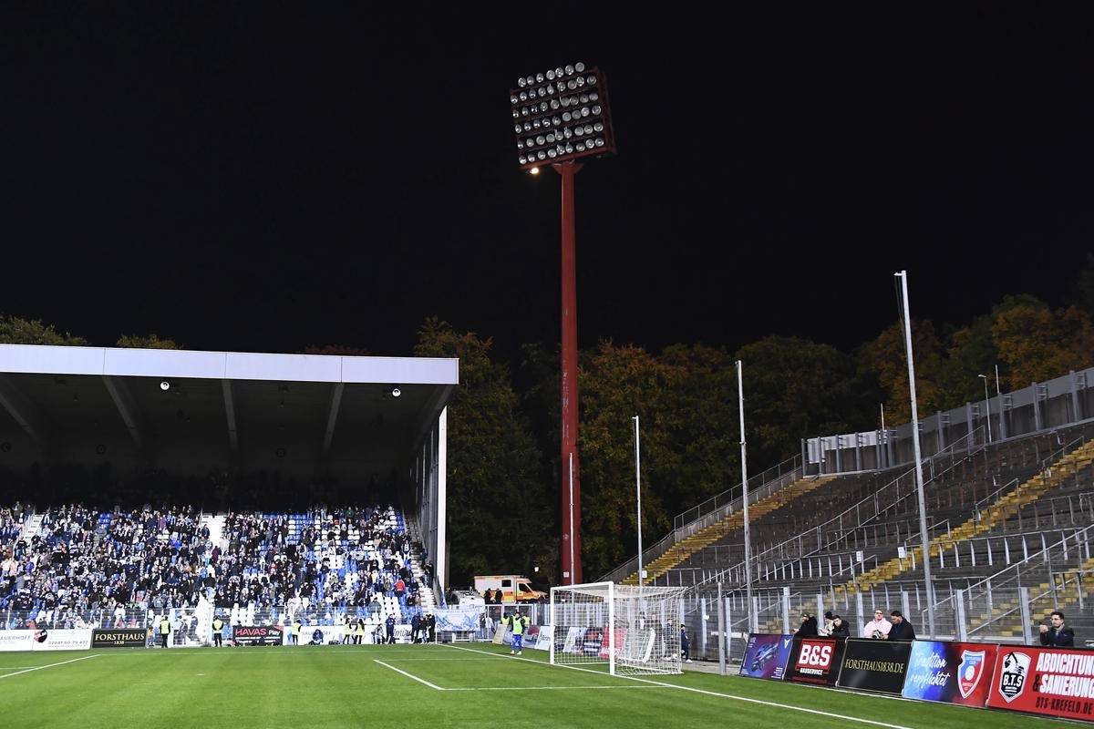 Nach dem frühen Rückstand versuchte der KFC, zurück ins Spiel zu finden. Etienne-Noel Reck vergab in der 25. Minute eine gute Möglichkeit für die Krefelder. In der 37. Minute wurde es dann plötzlich dunkel: Ein Kurzschluss legte einen Flutlichtmast lahm. Die Halbzeit wurde vorgezogen, anschließend wurden noch acht Minuten der ersten Hälfte nachgespielt, bevor direkt in die zweite Halbzeit gewechselt wurde.