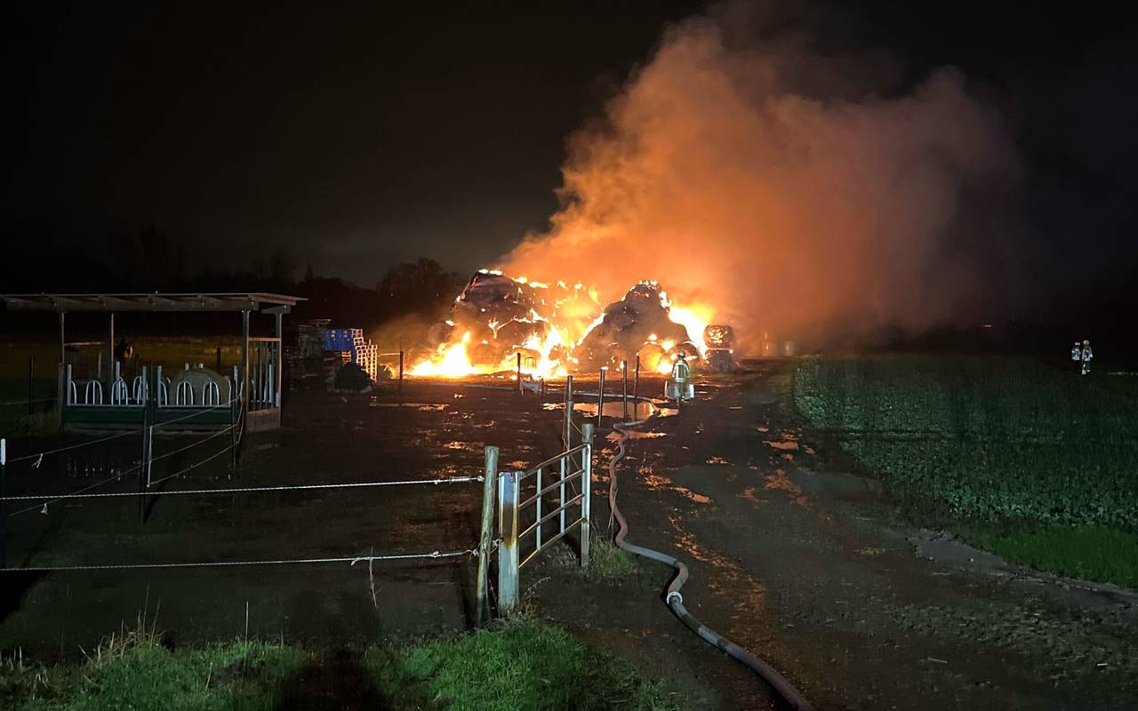 Erster Brand: In der Nacht zum 29. Dezember haben an der Dahlingstraße in Friemersheim rund 120 Heuballen gebrannt. Der Schaden wird auf 55.000 Euro geschätzt.