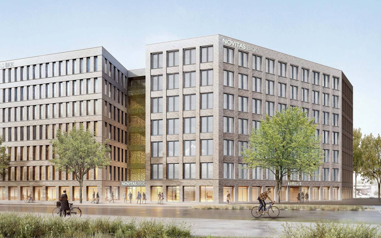 Nächster Neubau am Duisburger Hauptbahnhof. Die Novitas BKK hat den Mietvertrag erst vor vier Wochen unterschrieben - jetzt steht fest, dass HOCHTIEF das neue Bürogebäude baut. Die Arbeiten auf dem letzten freien Grundstück im sogenannten Quartier 1 sollen im Juni starten. Die Krankenkasse will hier voraussichtlich im 4. Quartal 2024 einziehen. Ein weiterer Mieter für die 6. Etage wird noch gesucht. Das neue Bürogebäude soll eine Bruttogrundfläche von rund 20.700 Quadratmetern haben. Zum Gebäude gehört künftig auch eine Tiefgarage, mit 177 Stellplätzen und mehreren E-Ladesäulen.