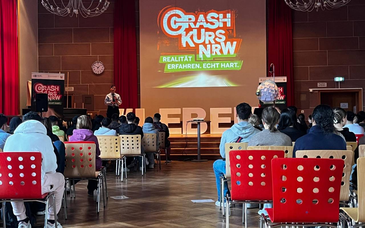 In Nordrhein-Westfalen ereignen sich pro Jahr etwa 550.000 Verkehrsunfälle. Rund 500 Menschen werden dabei pro Jahr getötet. Junge Fahrerinnen und Fahrer im Alter von 18 bis 24 Jahren verursachen übermäßig viele der schweren Unfälle. Fast 100 von ihnen sterben jedes Jahr in NRW. Deshalb setzt das Präventionsprogramm auf die Wirkung der Geschichten der Betroffenen und die Bilder, die dabei gezeigt werden. Sie erzählen von ihren ganz persönlichen Erfahrungen, wie sie Unfälle erlebt haben, oder wie sie sich beispielsweise bei der Erstversorgung oder dem Überbringen einer Todesnachricht gefühlt haben. Damit sprechen sie aktiv die Gefühle an und regen das Vorstellungsvermögen der jugendlichen Zuhörerinnen und Zuhörer an. Wenn ihr mehr Infos zu "Crash Kurs NRW" haben wollt, oder ihr gerne das Programm an eurer Schule sehen möchtet, findet ihr HIER alle Infos dazu.