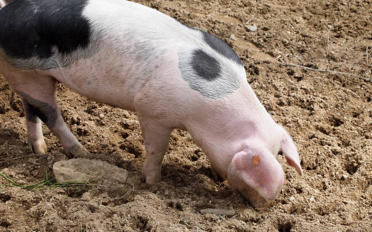 Schwein verfolgt Reporter