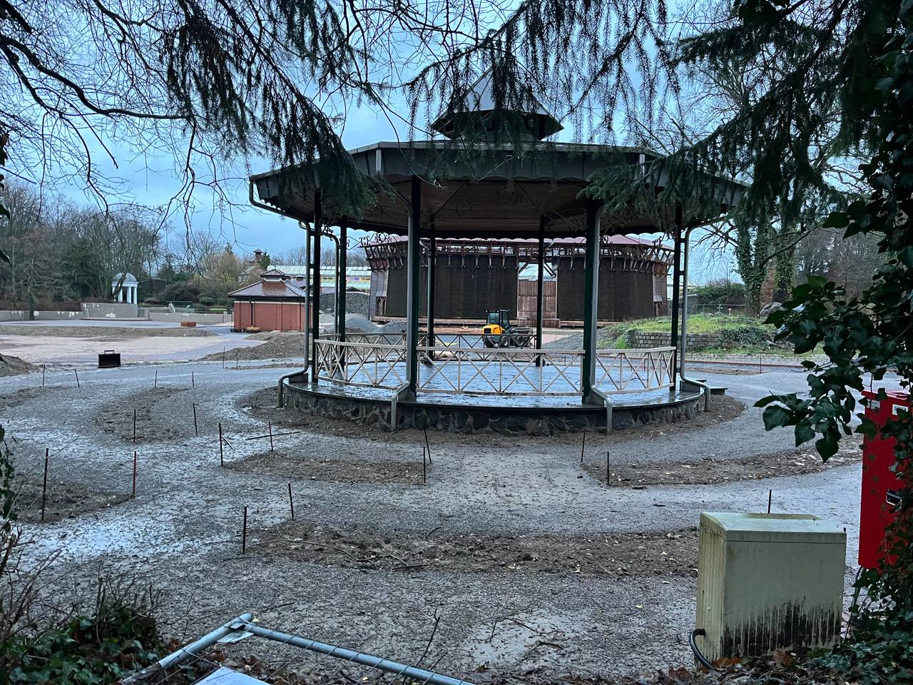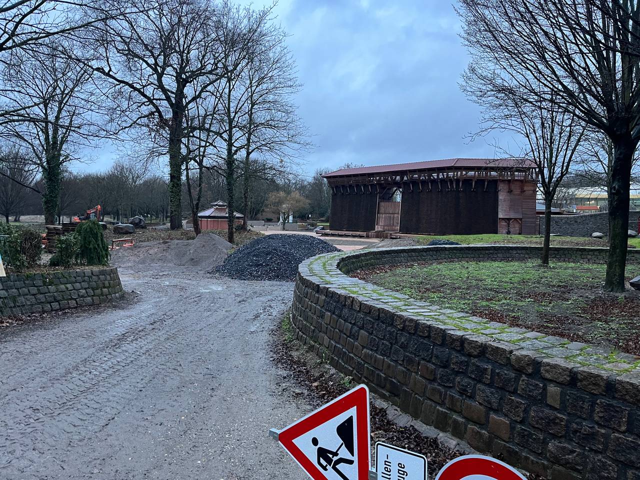 Im August sind die Bauarbeiten gestartet. Seitdem ist der Platz rund ums Gradierwerk gesperrt, aber die Aufhübschung geht mit großen Schritten voran und soll im Frühjahr fertig werden - die meisten Bereiche spätestens im Mai, der Abenteuerspielplatz im Juni/Juli. Der Revierpark Mattlerbusch soll wieder zeitgmäß und ansehnlicher werden:
