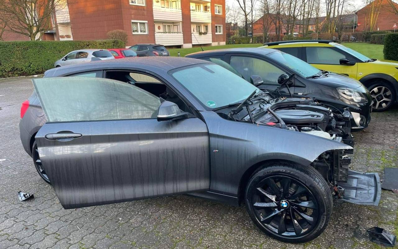 In der Nacht zu Mittwoch (15.12.) haben die Diebe am Rumelner Markt zugeschlagen. Die Besitzerin hatte ihren BMW dort am Motagabend (13.12.) um circa 19 Uhr abgestellt. Mittwochmorgen (15.12.) war von ihrem Auto dann nur noch die Hälfte übrig. Wie auf Bildern zu erkennen ist, hängen im Innenraum des Autos fast nur noch lose Kabel heraus. Die Diebe haben nahezu die komplette Innenausstattung ausgebaut – inklusive Lenkrad. Außerdem fehlt die Motorhaube.