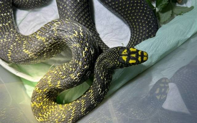 Polizei und Feuerwehr sind angerückt. Keiner wusste zunächst, ob es sich um eine Giftschlange handelt. Deshalb wurde der Tierrettunngsdienst hinzugezogen. Die Experten konnten Entwarnung geben. Die Schlange ist eine nicht giftige Kletternatter. Die Tierretter haben das männliche Exemplar gesichert und mitgenommen. Die Polizei sucht jetzt nach dem Halter der Schlange.