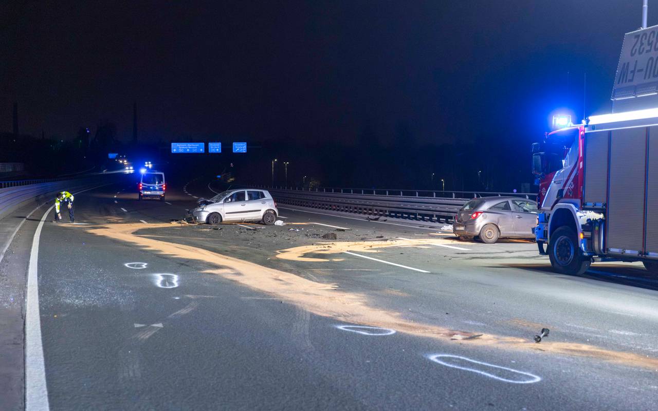 Die vier Wagen kollidierten gegen 21:30 Uhr in Höhe Duisburg-Beeck. Nach aktuellem Kenntnisstand gab es einen "Liegenbleiber", dem die nachfolgenden Fahrzeuge nicht mehr ausweichen konnten. Bei dem Unfall wurden insgesamt vier Menschen verletzt. Zwei von ihnen erlitten schwere Verletzungen und mussten ins Krankenhaus gebracht werden. Eine Person wurde lebensgefährlich verletzt. In den Fahrzeugen eingeklemmt wurde niemand.