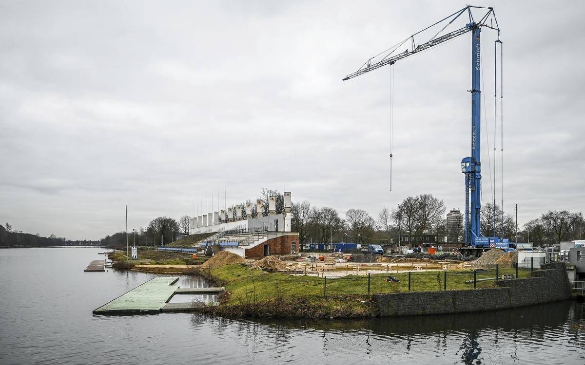 Die Baustelle für die neue Tribüne an der Regattabahn geht voran. Die Tribüne soll komplett überdacht und bestuhlt sein. Auch der Bereich für Rollstuhlfahrer wird neu gebaut.