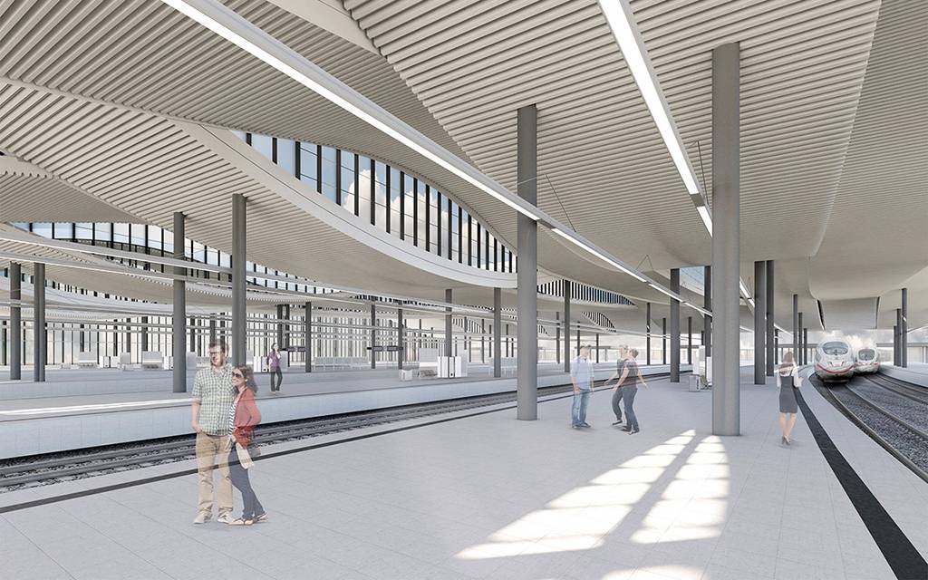 Am Duisburger Hauptbahnhof haben die Bauarbeiten endlich begonnen. Heute ist Spatenstich. Die Gleishalle inklusive Dach sollen umgebaut werden. Eine Konstruktion aus gewellten Stahlträgern wird das bisherige Dach ersetzen.