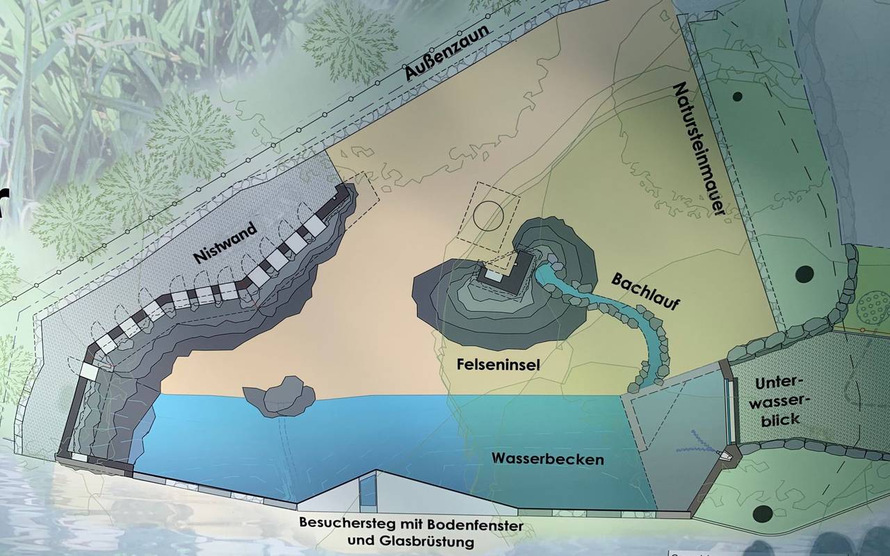 Die Kosten von 450.000 Euro werden durch eine Spende der Sparkasse gedeckt. Die neue Anlage wird der südafrikanischen Heimat der Tiere nachempfunden. Es gibt eine Felseninsel, Nistplätze, einen Strand und genug Wasser zum schwimmen und tauchen. Durch eine spezielle Scheibe im Becken können die Besucher die Pinguine beim tauchen beobachten. Bis zur Fertigstellung im kommenden Jahr sind die Pinguine weiterhin auf ihre alten Anlage zu sehen.