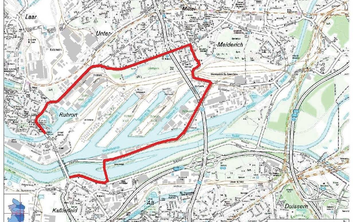 Über Ruhrdeich, Emmericher Straße, Westender Straße, Bahnhofstraße, Bürgermeister-Pütz-Straße, Am Nordhafen
