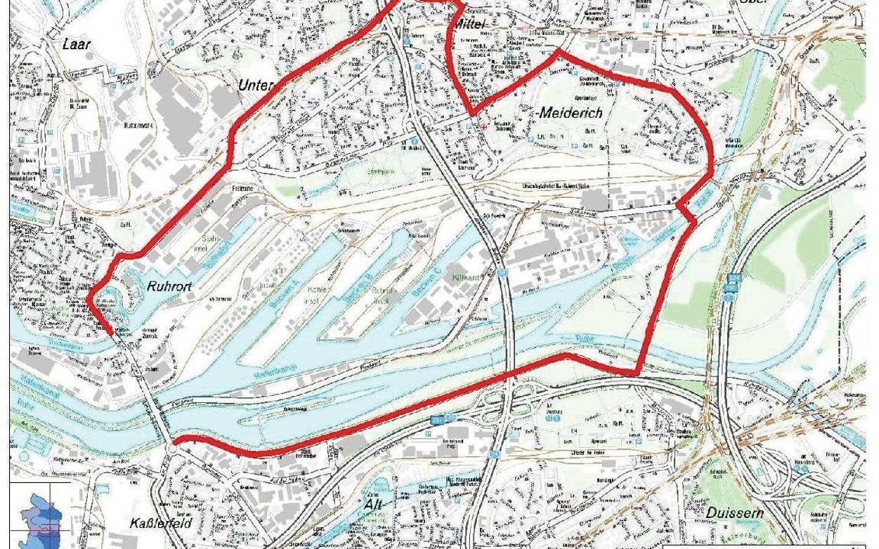 Über Ruhrdeich, Emmericher Straße, Westender Straße, Bahnhofstraße, Auf dem Damm, Biesenstraße, Baustraße, Vohwinkelstraße, Am Nordhafen