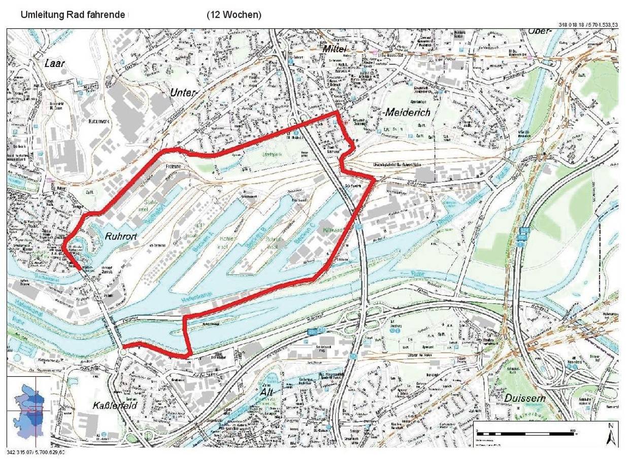 Während der Bauzeit hat die Stadt entsprechende Umleitungen für Autofahrer, LKW und für Radfahrer eingerichtet. Die entsprechenden Strecken seht ihr auf den folgenden Grafiken.Die Stadt, die Wirtschaftsbetriebe und die Duisburger Verkehrsgesellschaft bitten alle um Verständnis für die jetzt nötigen Arbeiten. Es wird gebeten,sich an die ausgeschilderten Umleitungen zu halten oder den Schienenersatzverkehr zu nutzen.