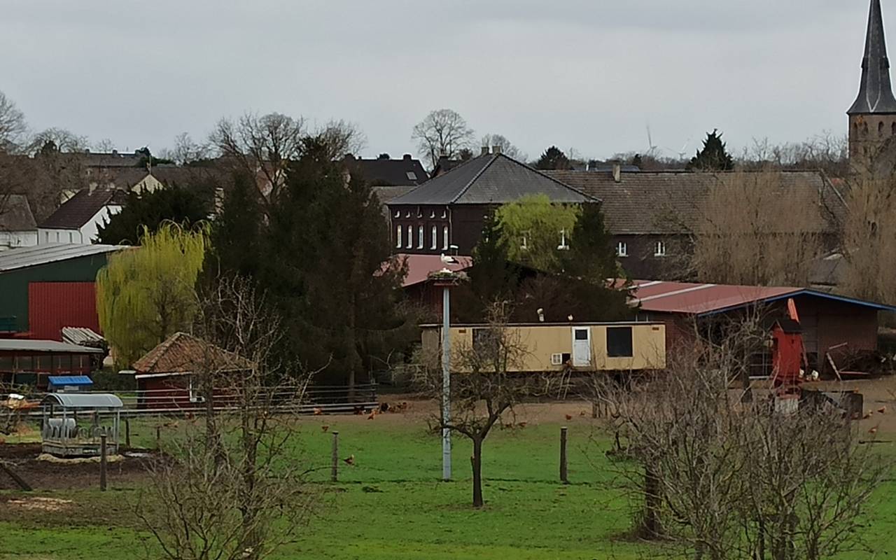In manchen Gärten stehen nur trockene Büsche und ein alter Grill - am Steinschenhof in Duisburg-Baerl steht im Garten direkt ein ganzes Storchennest mit Storchenpaar.