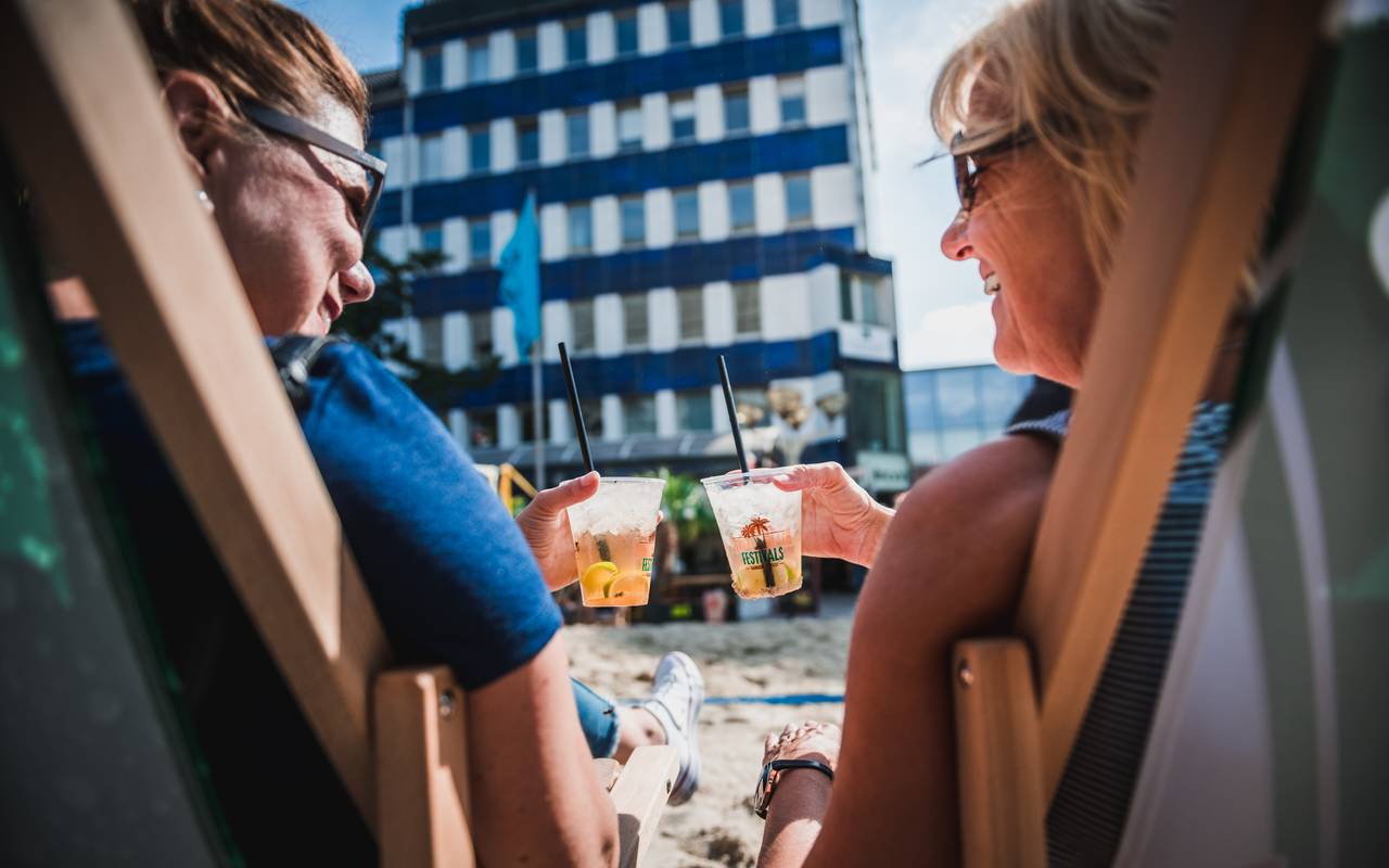 Etwa 80 Tonnen Sand, echte Palmen und Liegestühle sorgen auf der Königstraße für Urlaubsstimmung. Dazu gibt es Cocktails und Food Trucks mit Essen aus der ganzen Welt. Nach der Premiere im letzten Jahr gibt es auch diesmal wieder das ganze Wochenende Programm vor dem CityPalais.
