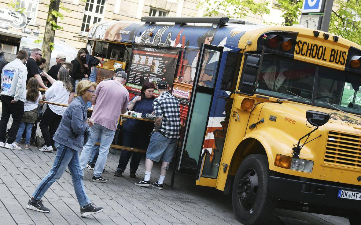 Nach dem Kunsthandwerkermarkt geht es direkt mit dem nächsten Open-Air-Event in der City weiter. Das Street Food Music Festival startet heute auf der Königstraße. 25 Foodtrucks stehen vor dem Forum. 4 Bands machen Musik auf der Bühne. Los geht's heute um 14 Uhr. Samstag und Sonntag haben die Stände jeweils ab 12 Uhr geöffnet.