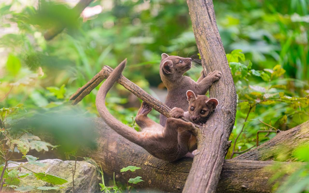 Im Zoo Duisburg freut man sich über Nachwuchs bei den Fossa. Die beiden kleinen Raubkatzen können nun immer häufiger bei Streifzügen durch das Gehege beobachtet werden.