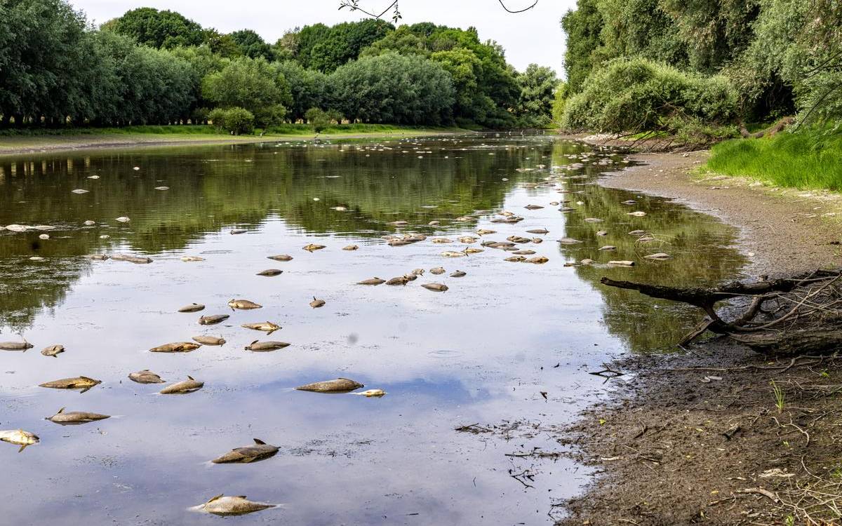 In der Roos in Friemersheim treiben aktuell hunderte tote Fische. Hitze und Trockenheit haben zu dem massenhaften Fischsterben in dem Altarm des Rheins geführt.