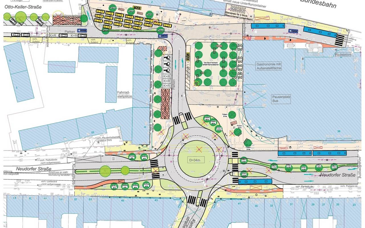 Aus dem Hintereingang soll ein zweiter Haupteingang werden - so beschreibt die Stadt das Ziel der Umbauarbeiten am Osteingang. In Zukunft soll es dort einen barrierefreien Platz mit Außengastronomie geben. Auch die Straßen vor dem Bahnhof werden umgestaltet - z.B. bekommt die Kreuzung Neudorfer Straße und Kammerstraße einen Kreisverkehr. Für die Arbeiten plant die Stadt gut anderthalb Jahre Zeit ein. So lange kann es rund um den Osteingang immer wieder zu Straßensperrungen kommen - Ab heute ist z.B. die Otto-Keller-Straße teilweise gesperrt.