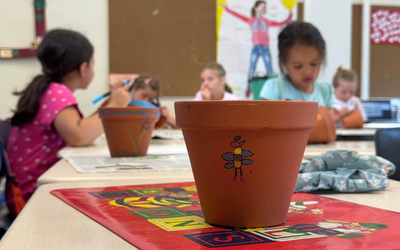 Das Gelernte setzten die Kinder sofort in die Tat um. Jeder Schüler bekam einen eigenen Blumentopf zum Bemalen und Samen zum Einpflanzen. Gemeinsam legten sie auf einer Wiese des Schulgeländes eine Wildblumenwiese an, die speziell Wildbienen als Nahrungsquelle dient. Die bemalten Töpfe durften die Kinder mit nach Hause nehmen. Dort können sie nun das Wachstum ihrer Pflanzen beobachten und entdecken, welche Insekten ihre kleinen Gärten besuchen.