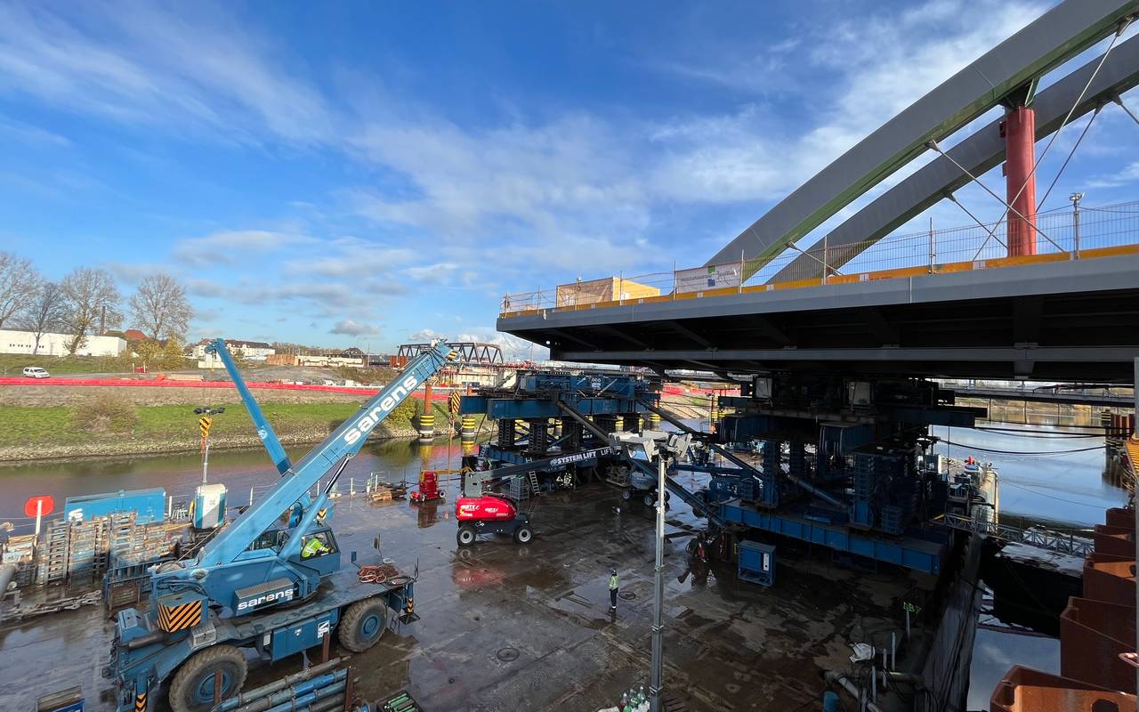 Der Neubau des Karl-Lehr-Brückenzugs kommt voran. Ab heute (15.11.) werden die neuen Brückenelemente über das Wasser gezogen und neben der alten Brücke positioniert. Danach muss der Brückenzug mehrmals gesperrt werden.