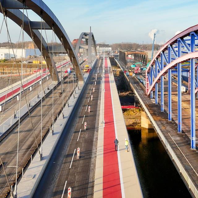 Die kommenden Arbeiten verlaufen in mehreren Phasen. Der Karl-Lehr-Brückenzug ist an den nächsten drei Wochenende gesperrt. Dann erfolgt das sogenannte Einschwimmen der neuen Brückenelemente. Die erste Sperrung startet in der Nacht von Donnerstag auf Freitag und geht bis Sonntagnacht. Drei Tage können weder Autos, noch Radfahrer oder Fußgänger über die Brücke. Nur die Straßenbahnen der Linie 901 können normal fahren. Die weiträumige Umleitung führt in beiden Richtungen über den Ruhrdeich, die Aackerfährbrücke und Meiderich. Gleiches gilt für die beiden Wochenenden danach. Mehr Infos zum Projekt und einen Livestream findet Ihr hier.