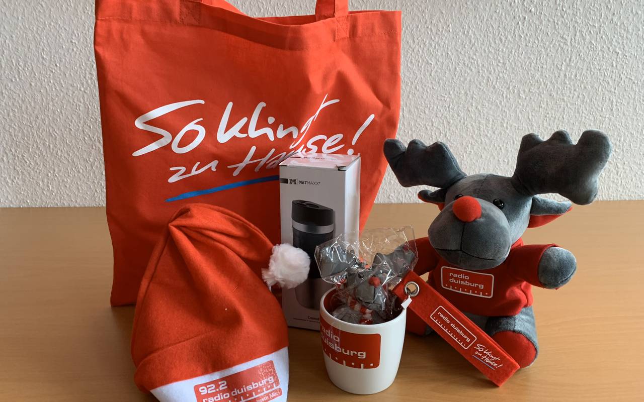 Eine Radio Duisburg Tasse, Schlüsselanhänger und natürlich unser Maskottchen Emil durften in der Geschenketasche nicht fehlen.