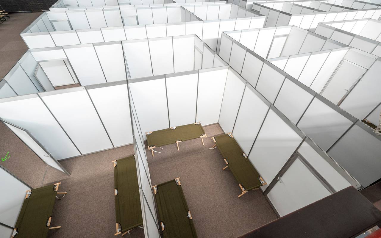 Stadt und Feuerwehr haben am Bertolt-Brecht-Berufskolleg in Huckingen zwei Sporthallen für geflüchtete Menschen aus der Ukraine eingerichtet.
