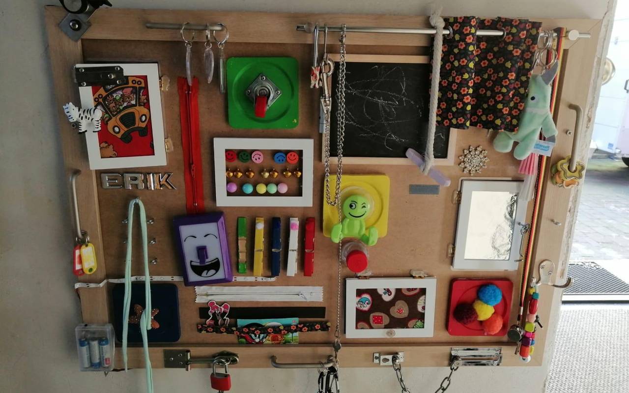 Selbstgebaute Erlebniswand für Kinder