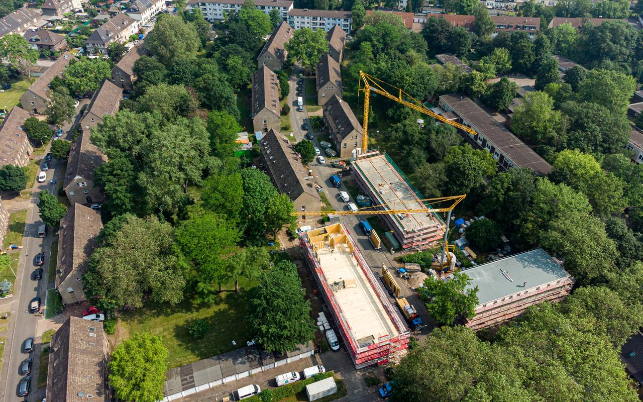 In Hüttenheim entsteht aktuell neuer Wohnraum. Das Wohnungsunternehmen Vonovia arbeitet in der Heinrich Bierwes Straße, der Rembrandstraße und der Kolumbusstraße an einer Quartiersentwicklung.